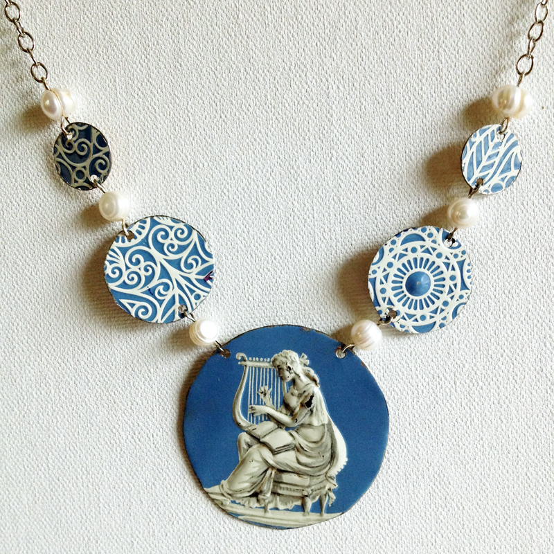 Whether transforming an old shoe clip in to a pendant or fashioning an antique buckle in to a bracelet, this collection is eclectic and designed for the person that wants a one-of-a kind statement piece.