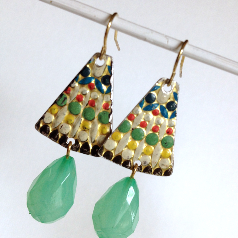 My work is a collection of things that make me happy, and hopefully, you too. Whether I'm fashioning some vintage jewels into a pair of earrings, or transforming a tarnished silver platter into a one-of-a-kind necklace, my work is designed to simply make you smile. I strive to create jewelry that is unique, accessible, and tells a story. All of my work is hand-crafted, and inspired by my (pretty-darn-great) everyday life.